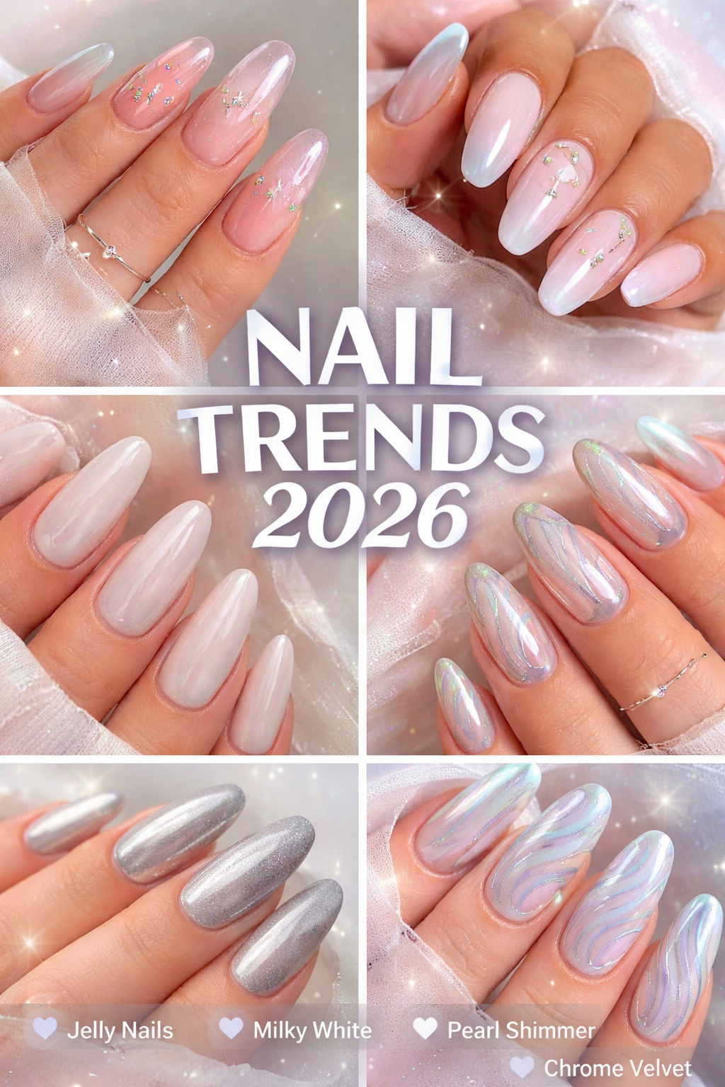 Fedezd fel a 2026-os legmenőbb körömtrendeket! 💖 Idén hódítanak a jelly nails, a milky white letisztult árnyalatok, a gyöngyházfényű csillogás és a modern chrome velvet hatás. Ha elegáns, nőies, mégis trendi manikűr inspirációt keresel 2026-ra, ezt a válogatást imádni fogod!